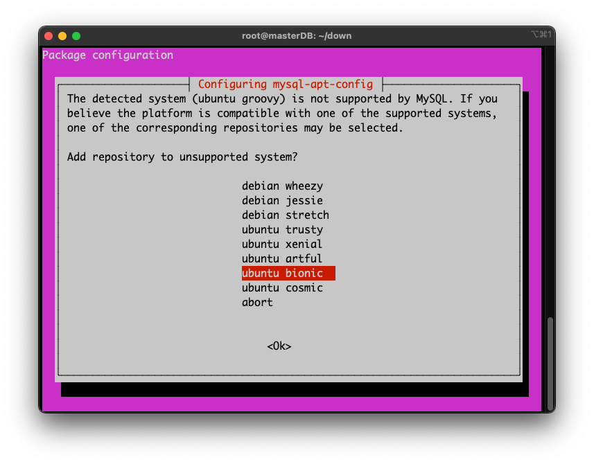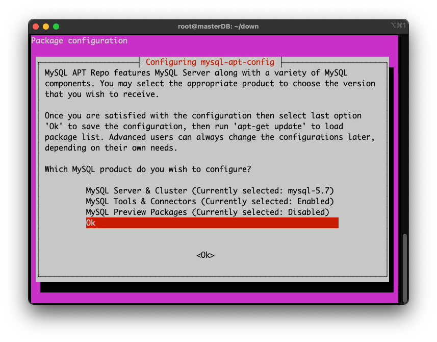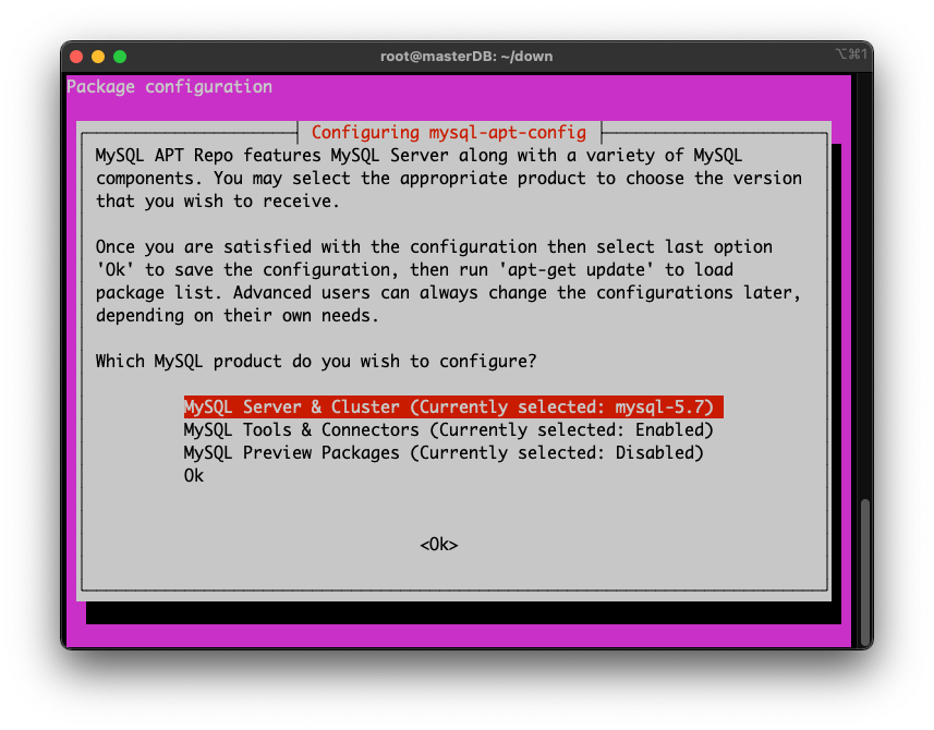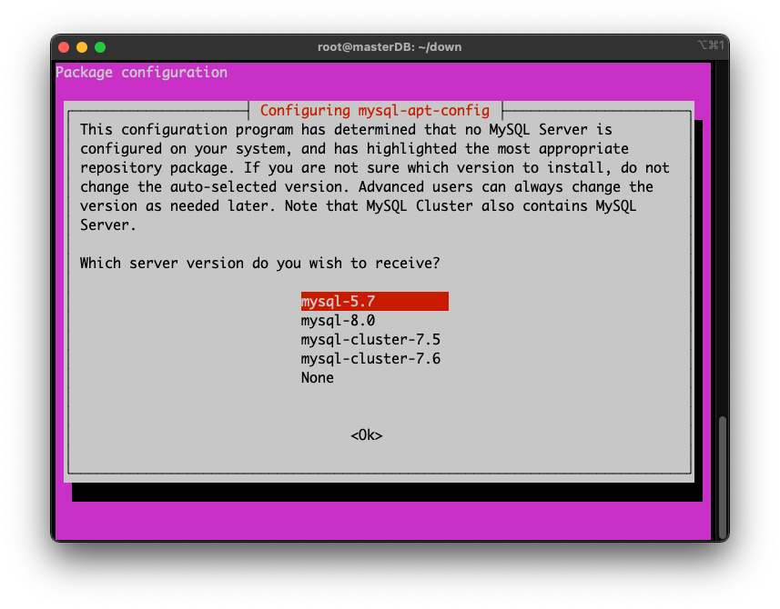 root@masterDB:~/down# sudo dpkg -i mysql-apt-config_0.8.12-1_all.deb